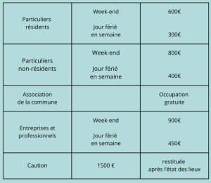 Tarifs de location en vigueur à compter du 11/02/2026